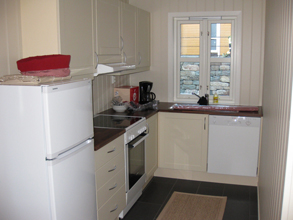 5 store feriehus, ca 74 m2.  2. til 3. etasjer med 4. soverom med 8. sengeplasser(2+2+2+2). 1. bad med dusj/wc, vaskemaskin, stue med TV,  innholdsrikt kjøkken med oppvaskmaskin. Innredning med bord og stoler for 6 personer. Bilfritt miljø gjennom innendørs parkering i garasjeanlegg. Kort avstand fra parkering. Fantastisk Havutsikt og direkte adgang til sjøen.