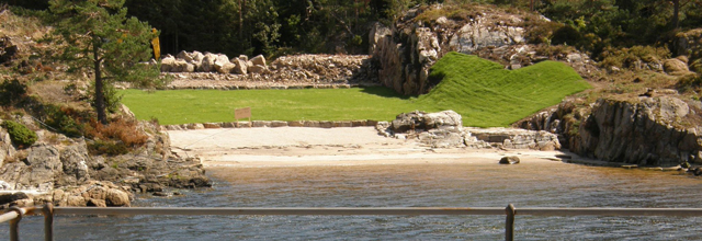Vakker skjærgård, strender og svaberg. Båtutleie, lekeplasser, Kiosk og et bilfritt miljø gjennom parkeringsanlegg under jorden.