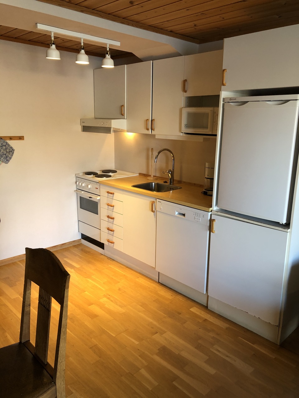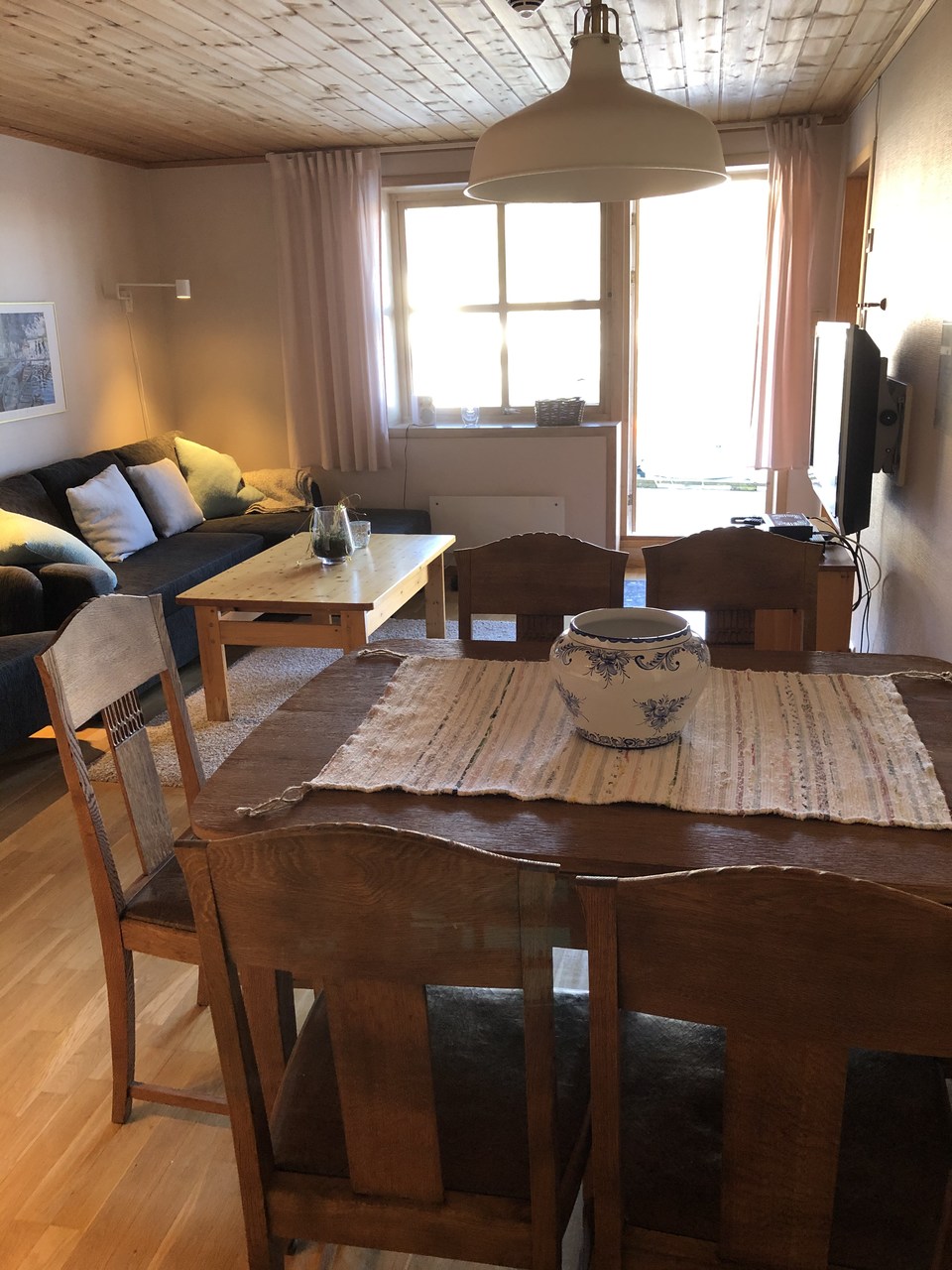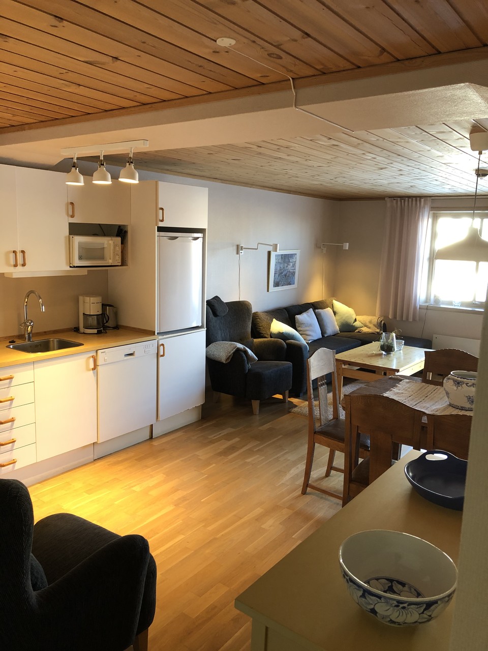 Er en 50 kvm stor leilighet med fantastisk beliggenhet kun 2 meter fra bryggen og båtplassene. Terrasse mot bukten og den gamle bebyggelsen i Åvik.