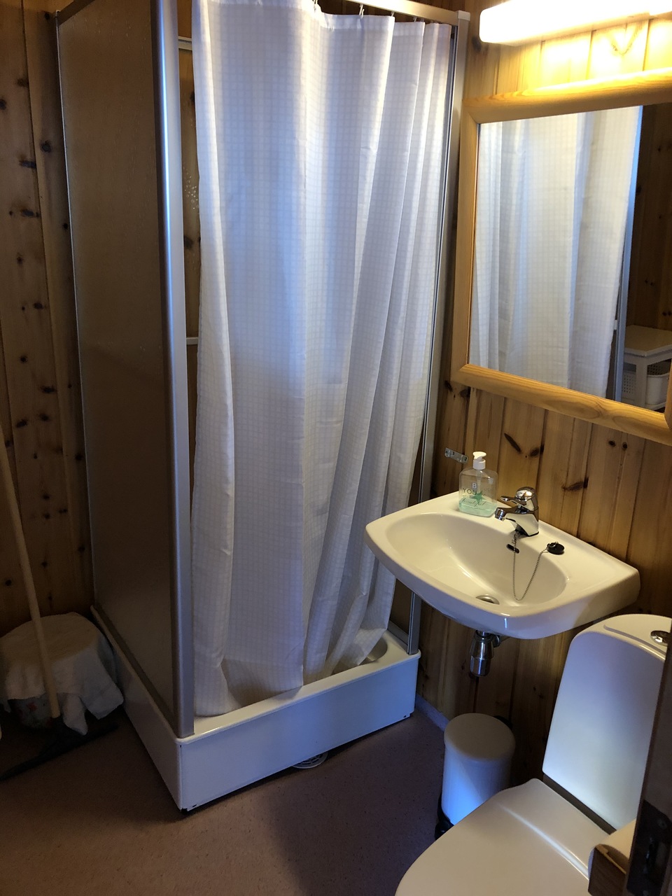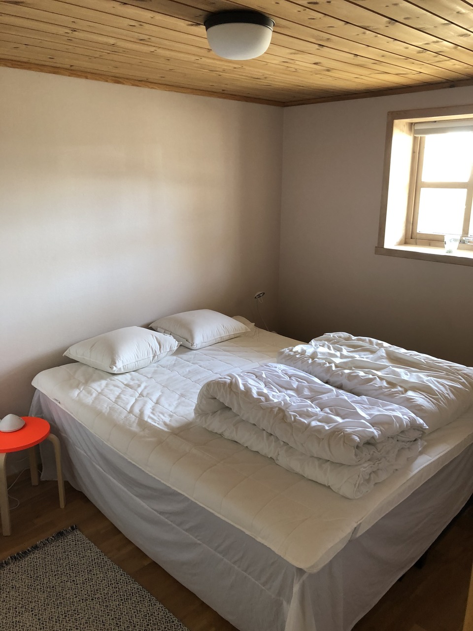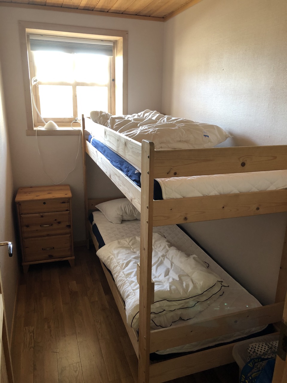 Stue/kjøkken, bad med dusj og toalett samt 2 soverom. Egner seg for 4 personer.