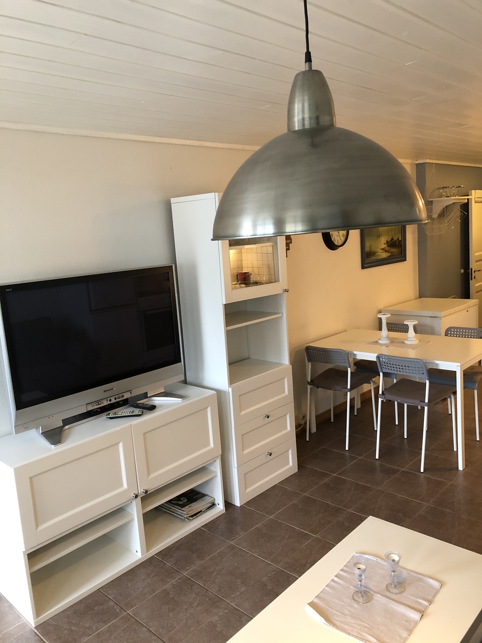 Leiligheten i 1 etg. på ca 50 kvm, med 2 soverom ( ett med dobbelseng og ett med køyeseng), kombinert kjøkken/stue samt baderom med dusj/toalett.