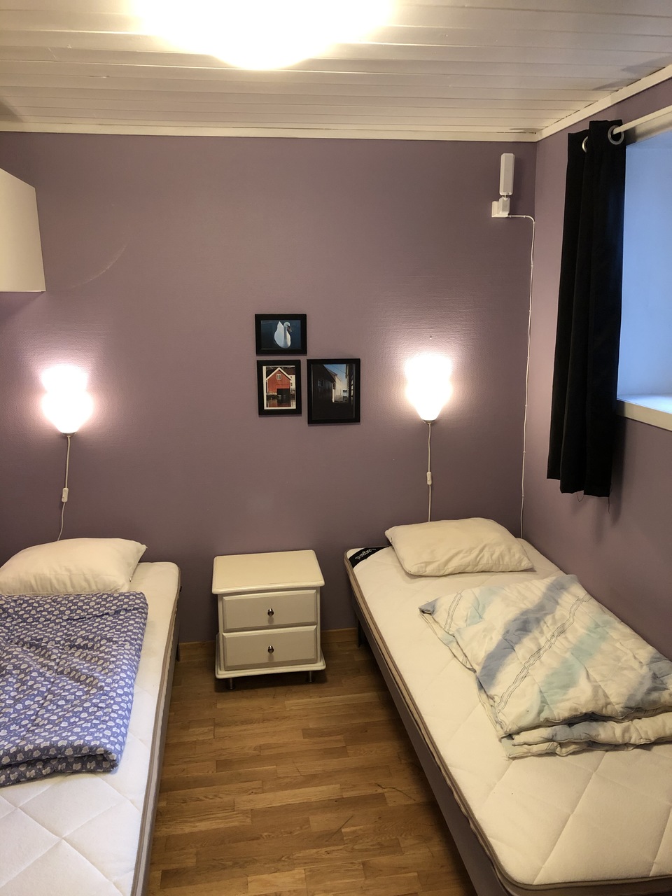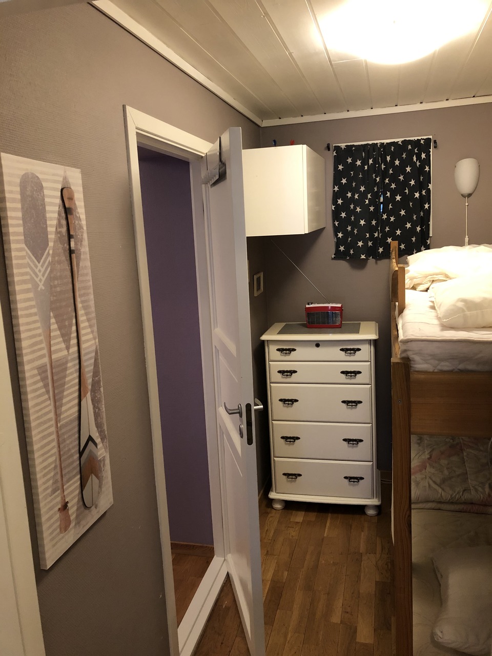 Die Wohnung ist in der 1. Etage, ca. 50 m2 groß, hat 2 Schlafräume (1x mit Doppelbett, 1x mit Etagenbett), ein Wohnzimmer kombiniert mit Küche und einer Dusche mit Toilette.Die Wohnung liegt 3 Meter vom Wasser entfernt und Sie können von der eigenen Terrasse die einzigartigen alten Häuser von Åvik sehen.