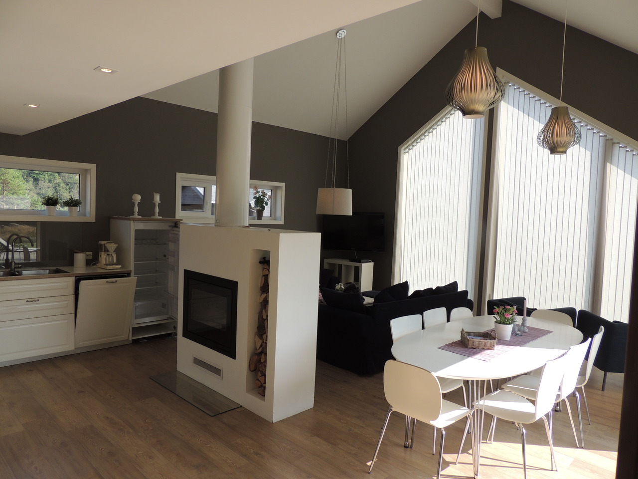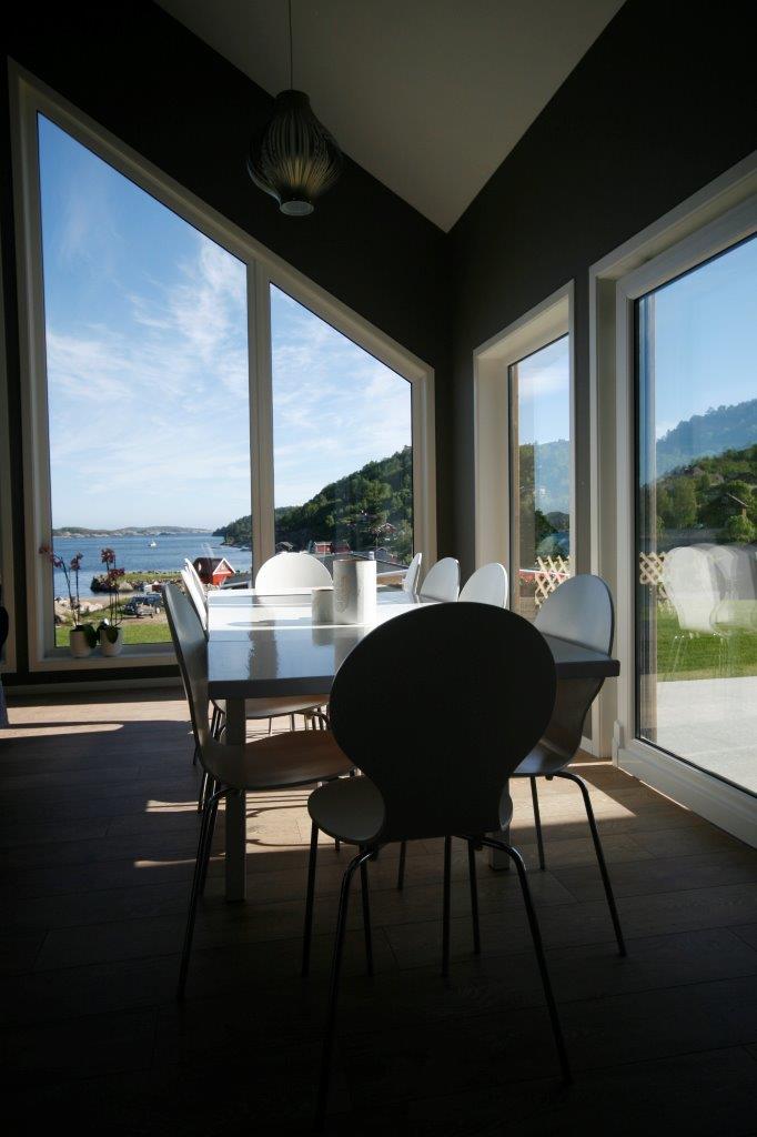 Die Räume sind mit Panoramafenstern ausgestattet und bieten eine herrliche Aussicht auf den Fjord.