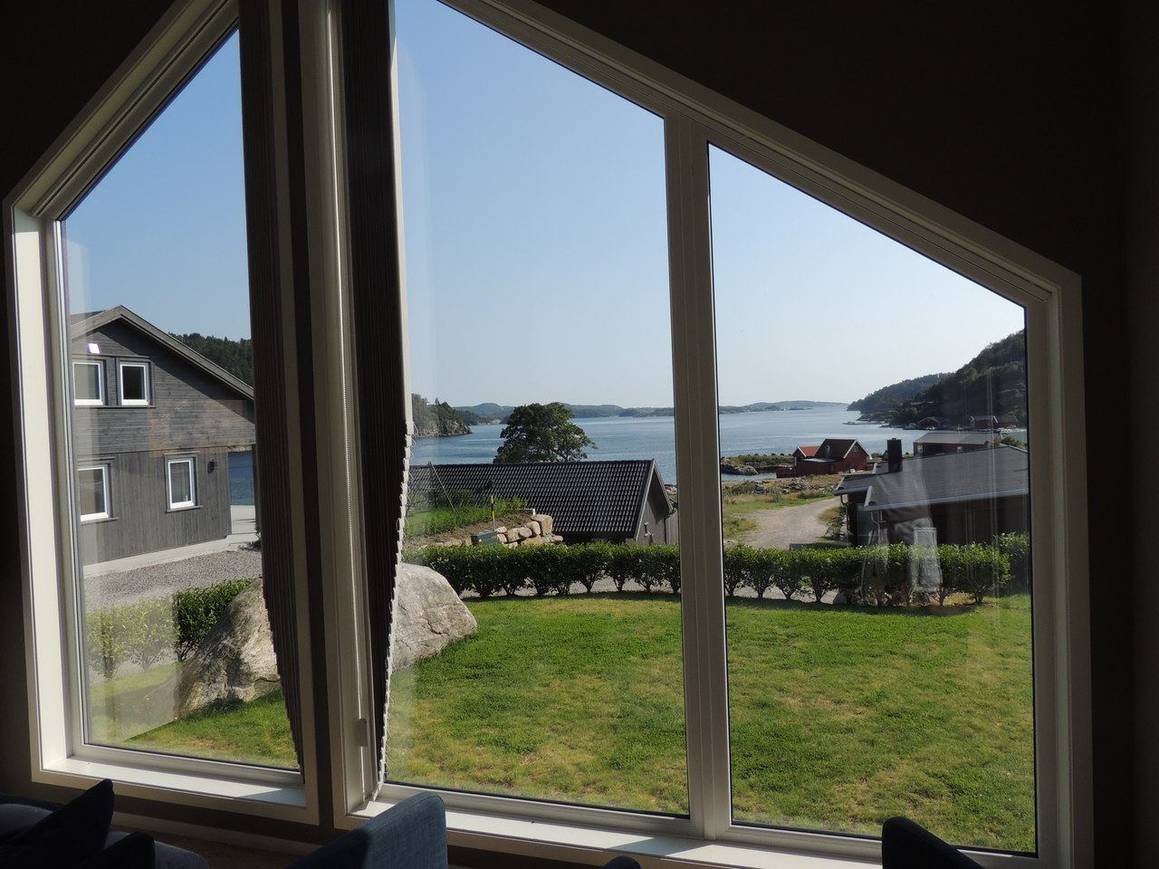 Grundstück und Fjordbllick, Freifläche mit Fjordblick, Baden am Bootsanleger und im See nebenan, Fischreinigungsplatz, Gartenmöbel, PKW- Stellplätze direkt am Haus etc.