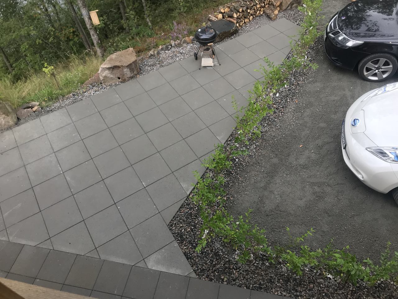 Parkeringsplassen på baksiden er romslig og har god plass til  biler.