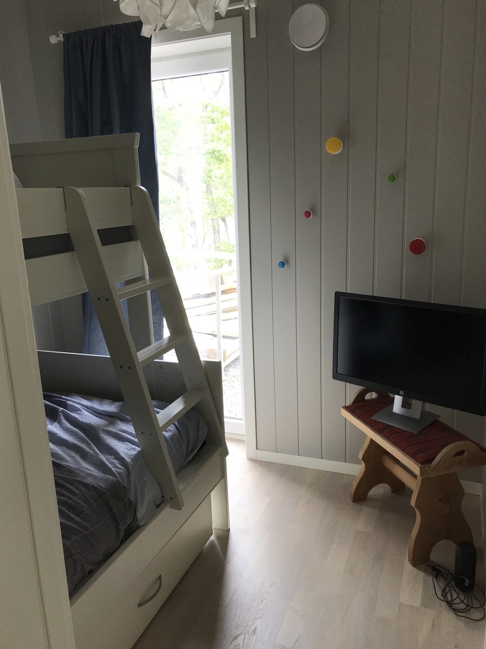 Soverom 2: Familiekøye 120x200 nede og 90X200 oppe (lystette gardiner)