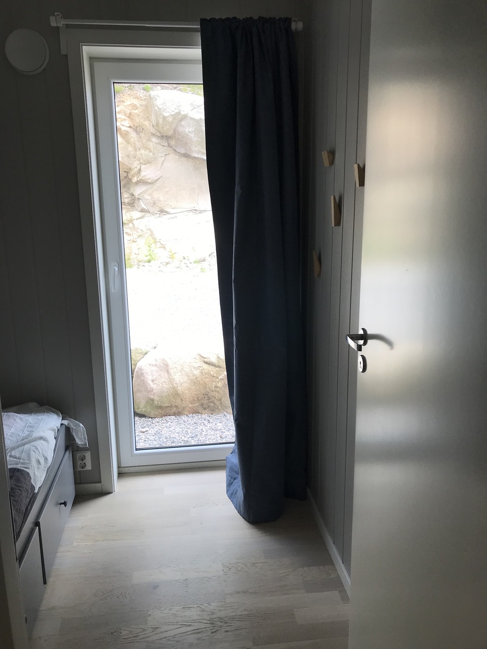 Soverom 1: 160 x 200 seng (kan gjøres om til enkeltseng på 80X200), lystette gardiner
