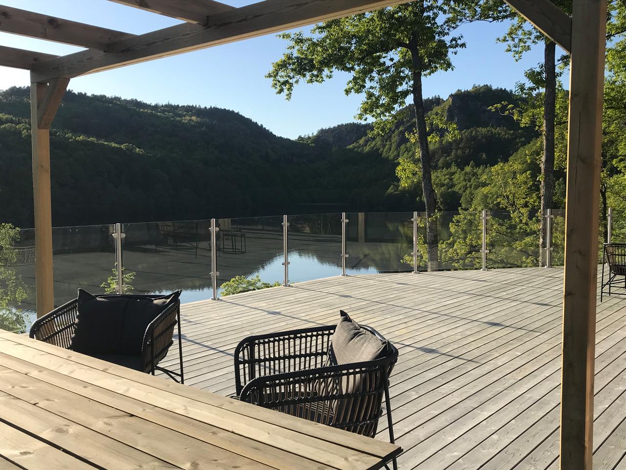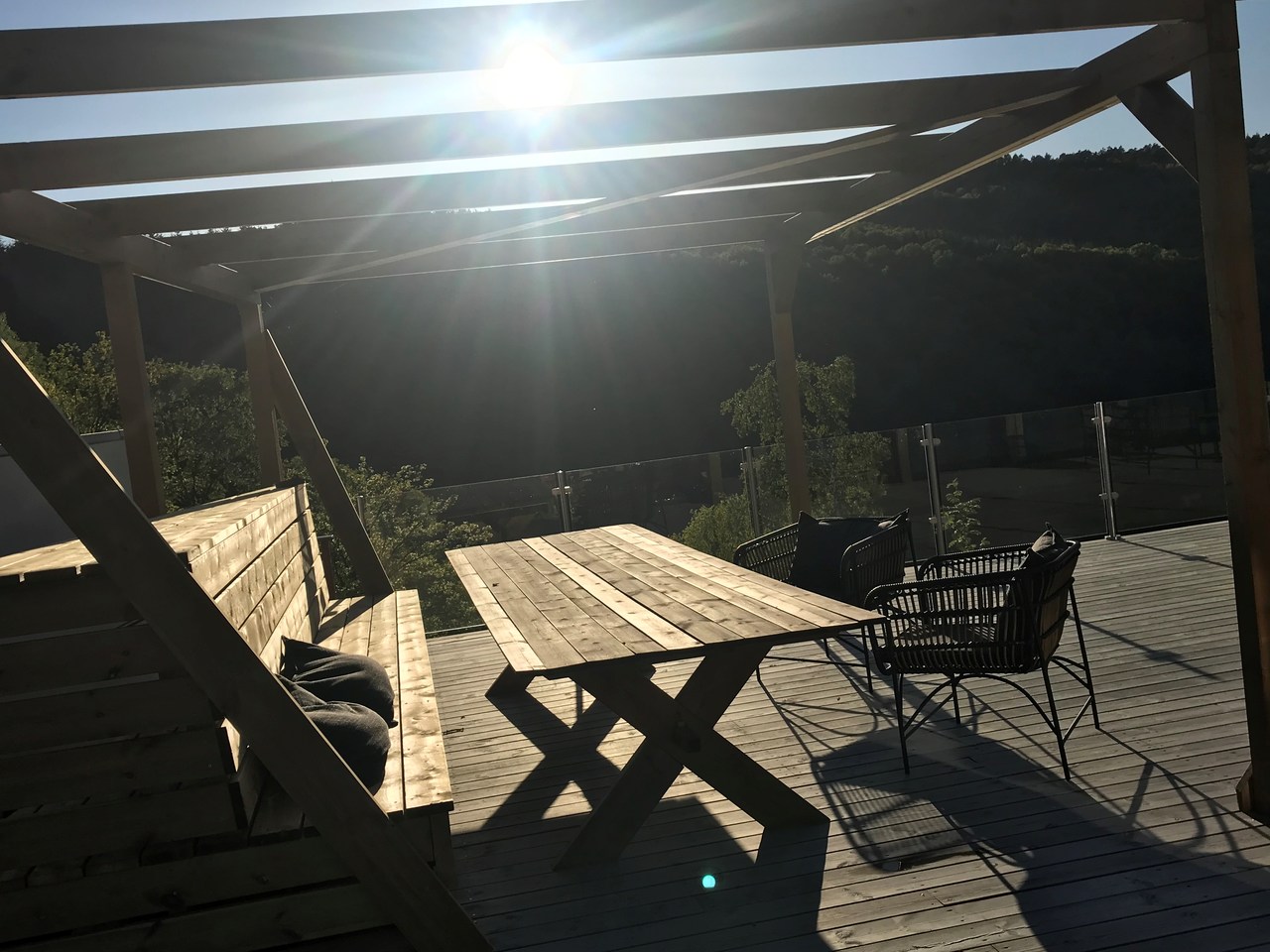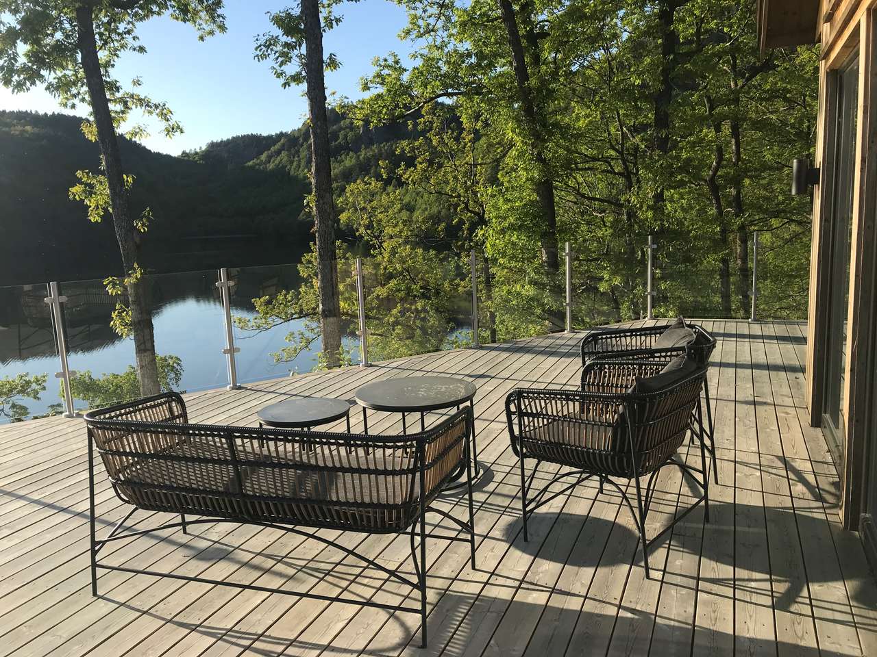 Hytte Kåfjord 007 er en ny (2018) og fantastisk hytte med stor terrasse foran og flott utsikt til fjord og badeplass