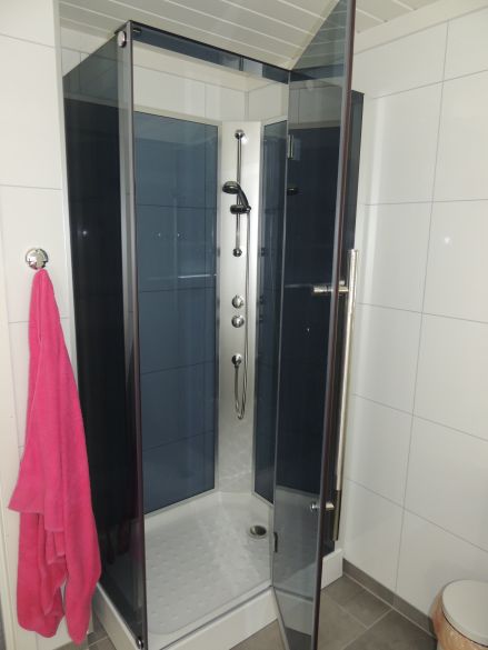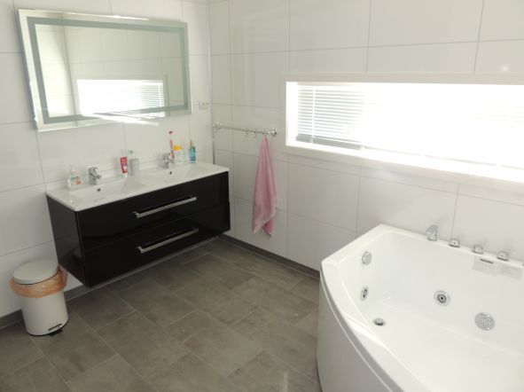Bad 8,9 m2: Whirlpool ,Dusche, WC und Badezimmerausstattung mit Doppel