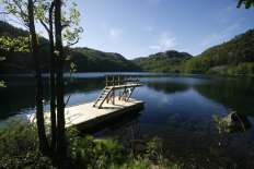 Wirklich ein fantastischer Ort mit Strand und Anlegestelle direkt vor der Hütte. 50 m hinter der Hütte kann man im Süßwasser vom Steg aus schwimmen gehen.