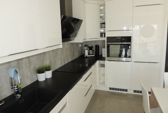 Wohnraum/ Küche 35 m2, Fernseher, DVD-Player und Sound-System.