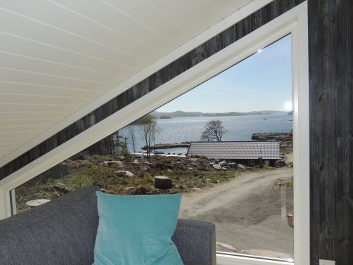 Fantastisk beliggende hytte med utsikt til fjord og sjø. En kjempeterrasse foran hytta. Båtplass ca 100 meter . Parkering direkte ved hytta.