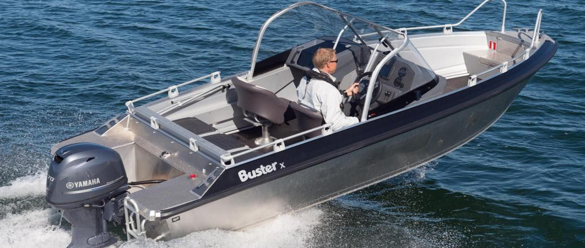Alu-Boot Buster X Bowrider, 18 ft., Modell 2018, 70 PS am Kåfjord, Lindesnes / Gemeinde Vigeland, Vestagder, Süd-Norwegen, 5,35 m lang, seetüchtiges, gepflegtes offenes Angelboot mit Steuerstand, 70 PS Yamaha Außenbordmotor, Echolot - Kartenplotter Garmin Echomap SV, FS-frei vor Geb.- Dat. 1980, max. 31 Knoten. Das Boot ist gut fûr 4 Anglere geeignet.