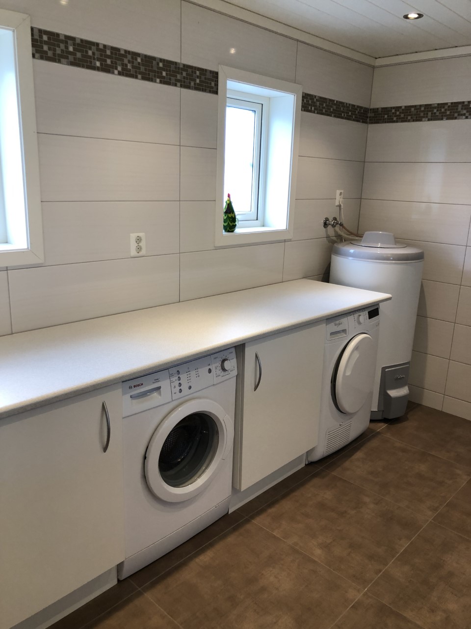 Vaskerom : Vaskemaskin, tørketrommel og frys