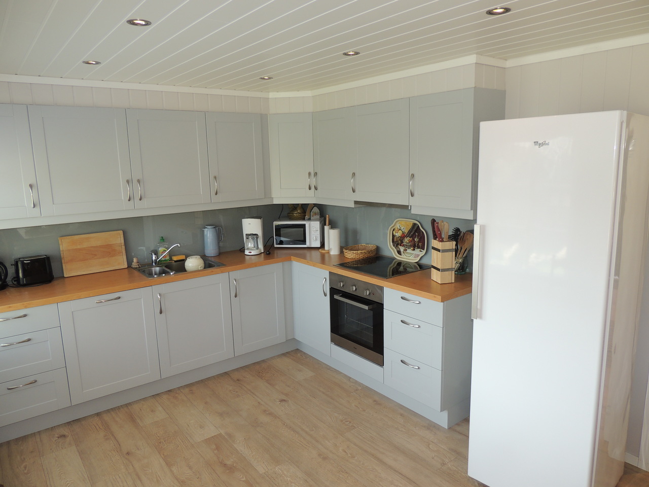 Das im Sörland-Stil erbaute neue Ferienhaus 'Kåfjord 1' liegt etwas oberhalb u. in sonniger Lage mit Aussicht auf den Fjord am schönen Kåfjorden, der in der Vergangenheit auch Kvåfjorden genannt wurde. Die ruhige Lage an einem kleinen Weg, in Umgebung einiger neuer Ferienhäuser garantiert Ihnen unbeschwerte Urlaubstage. Hinter dem Haus liegt zudem ein recht großer, sauberer Süßwassersee mit Badestelle. Ihr Boot liegt in 200 Meter Entfernung an einer neuen Steganlage. In Nähe des gepflegten Bootsanlegers mit eigenem Bootsliegeplatz gibt es auch Parkplätze und Bademöglichkeiten sowie eine Möglichkeit, die Fische zu säubern.