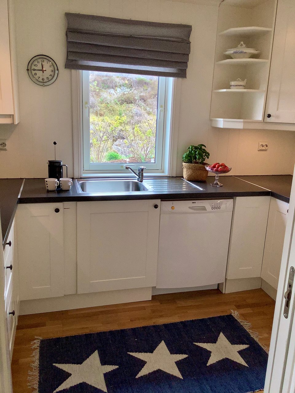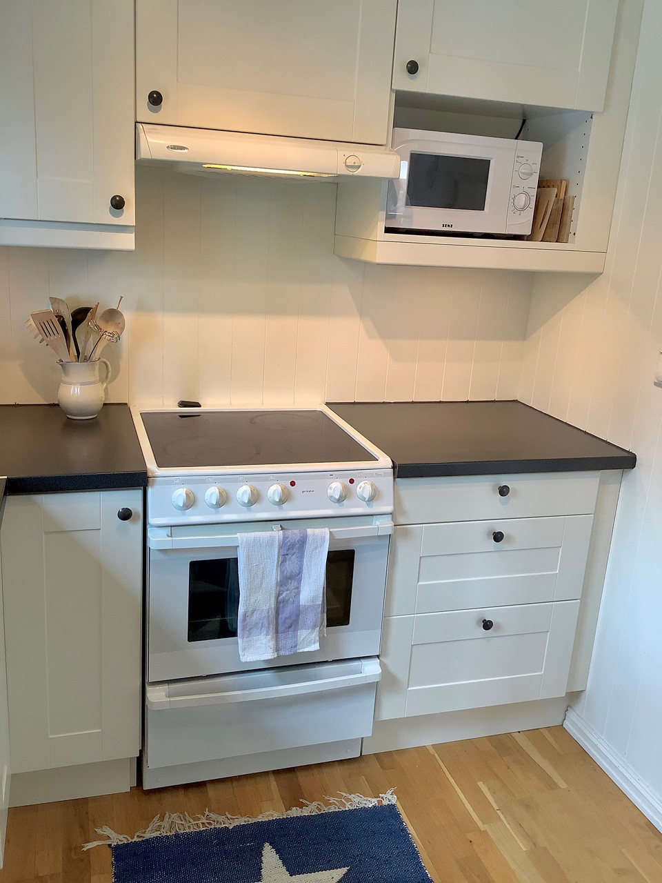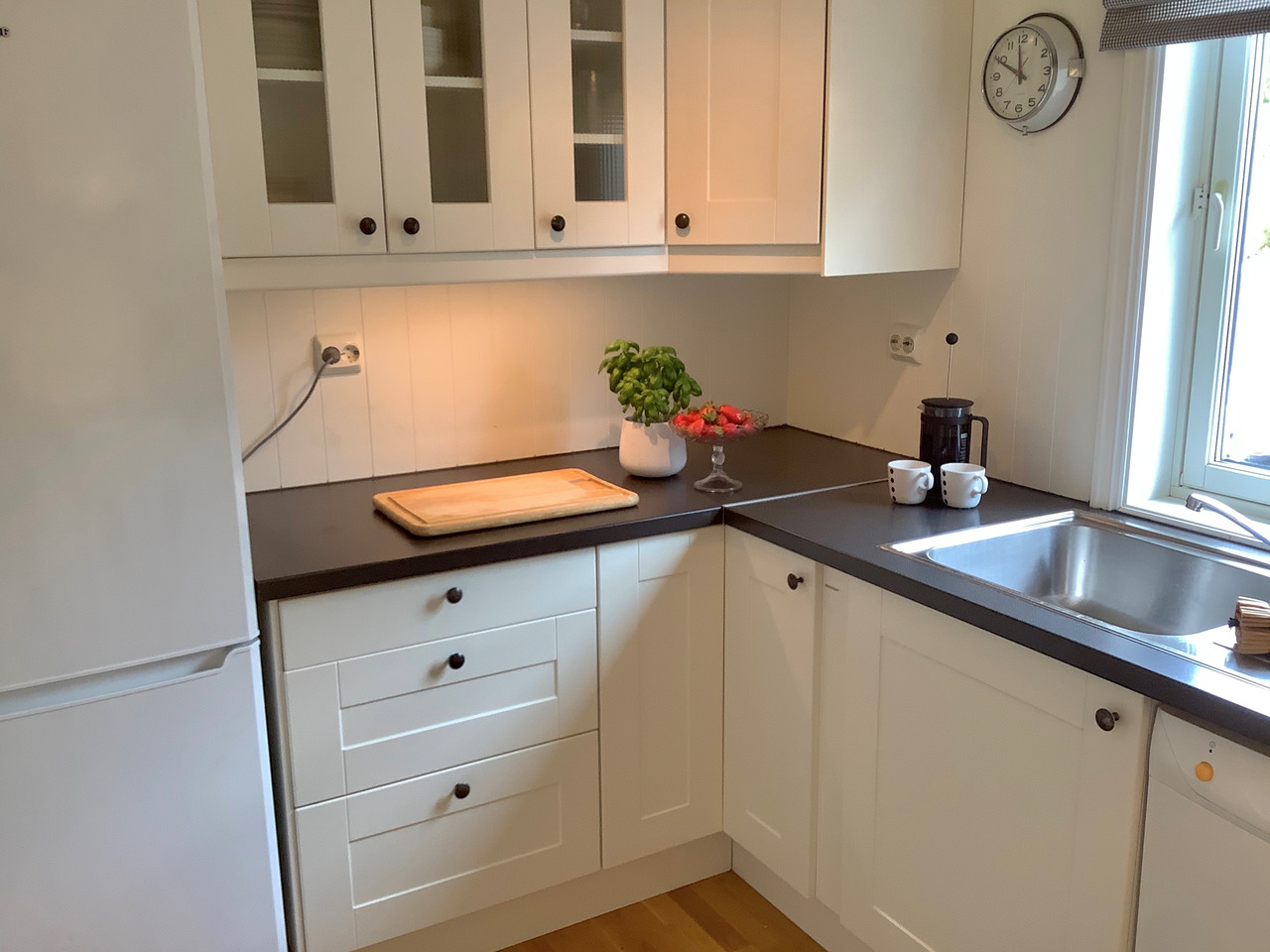 Kjøkken: Komfyr, fryseboks, kjøleskap, kaffetrakter, micro og vannkoker.