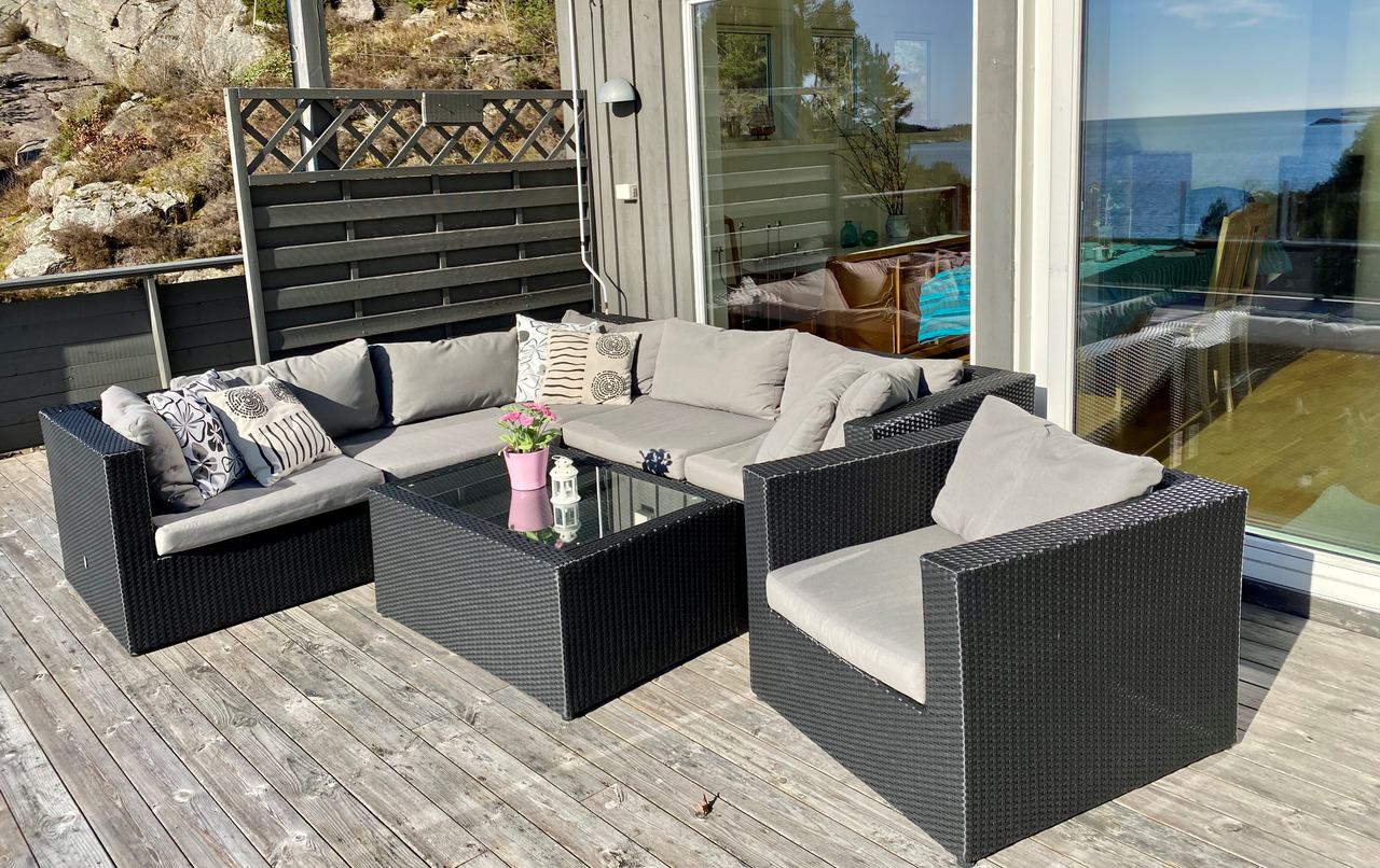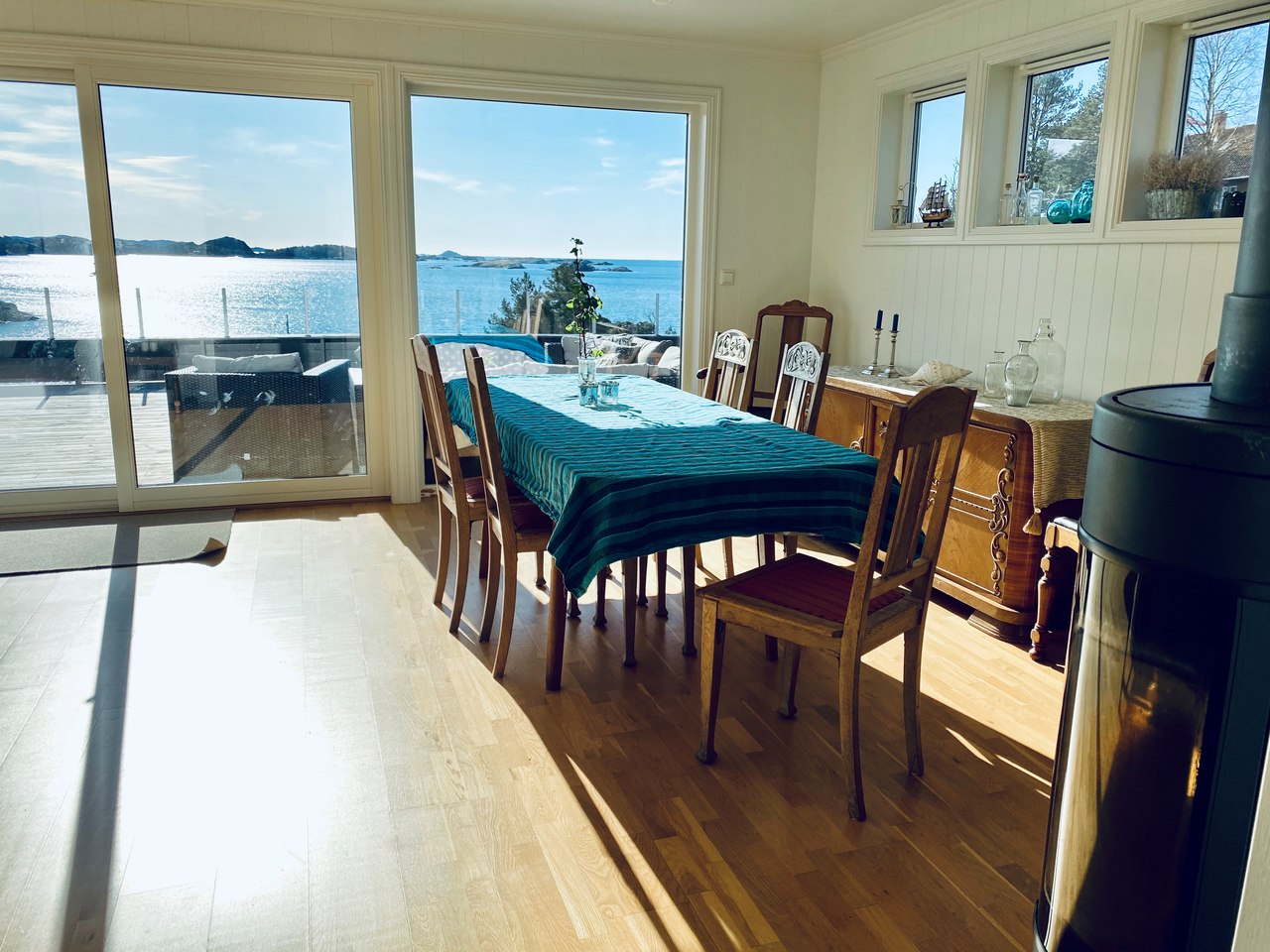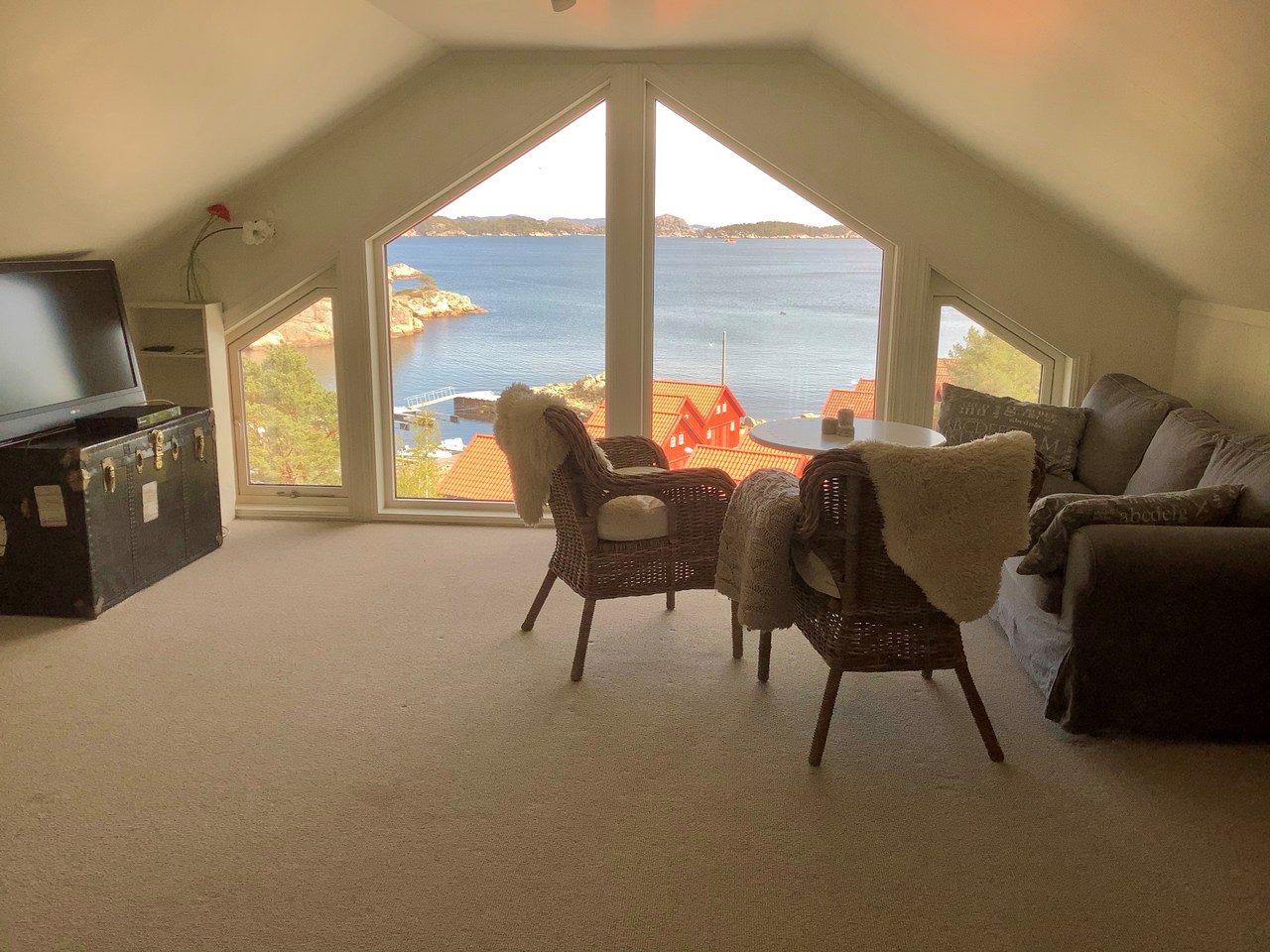 Helt ytterst i havgapet med nydelig utsikt mot sjøen, ligger denne flotte hytta. Den er koselig innredet og meget godt utstyrt. Hytten har også 2 terrasser slik at du altid finner le for vind.