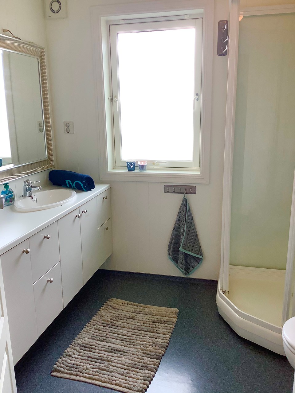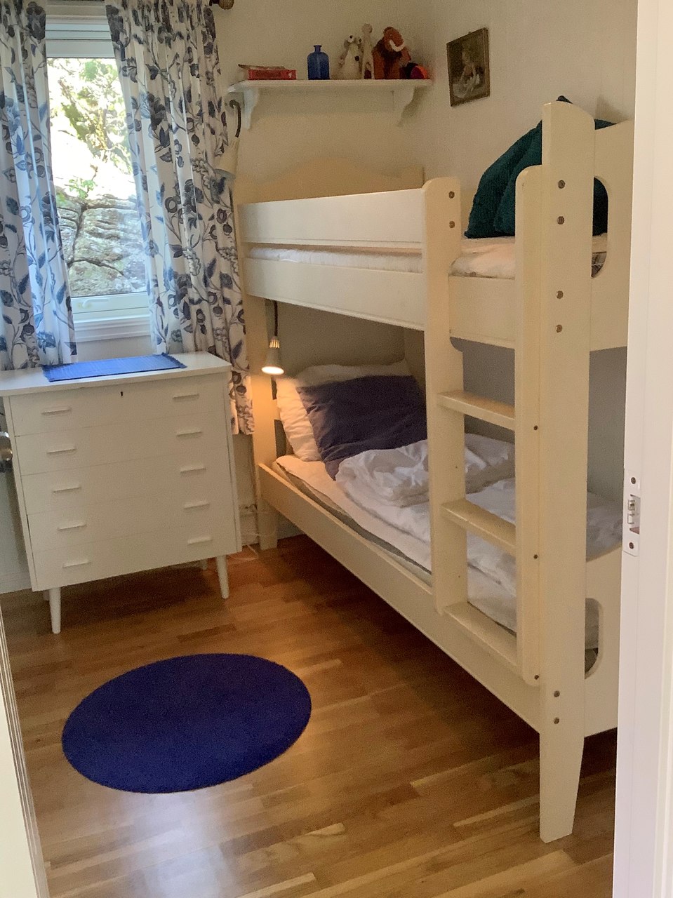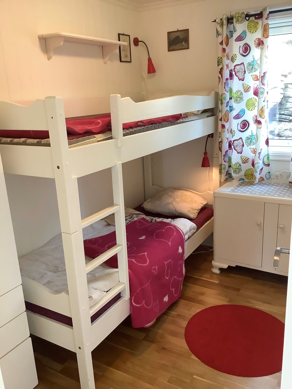 4 Soverom: 1. dobbelseng, og 1 med dobbel og 2 enkle senger, 2 rom med hver sin køyeseng.