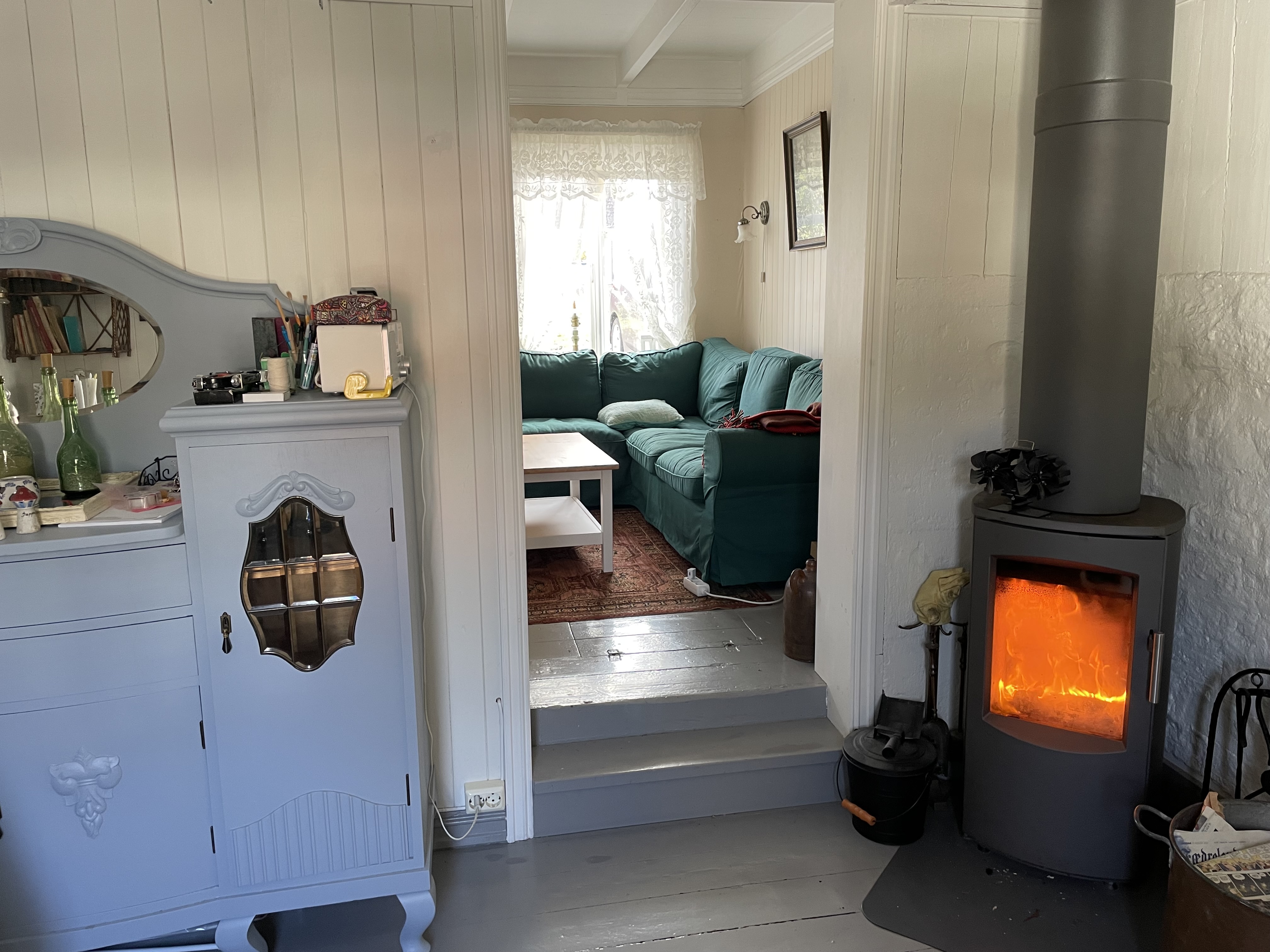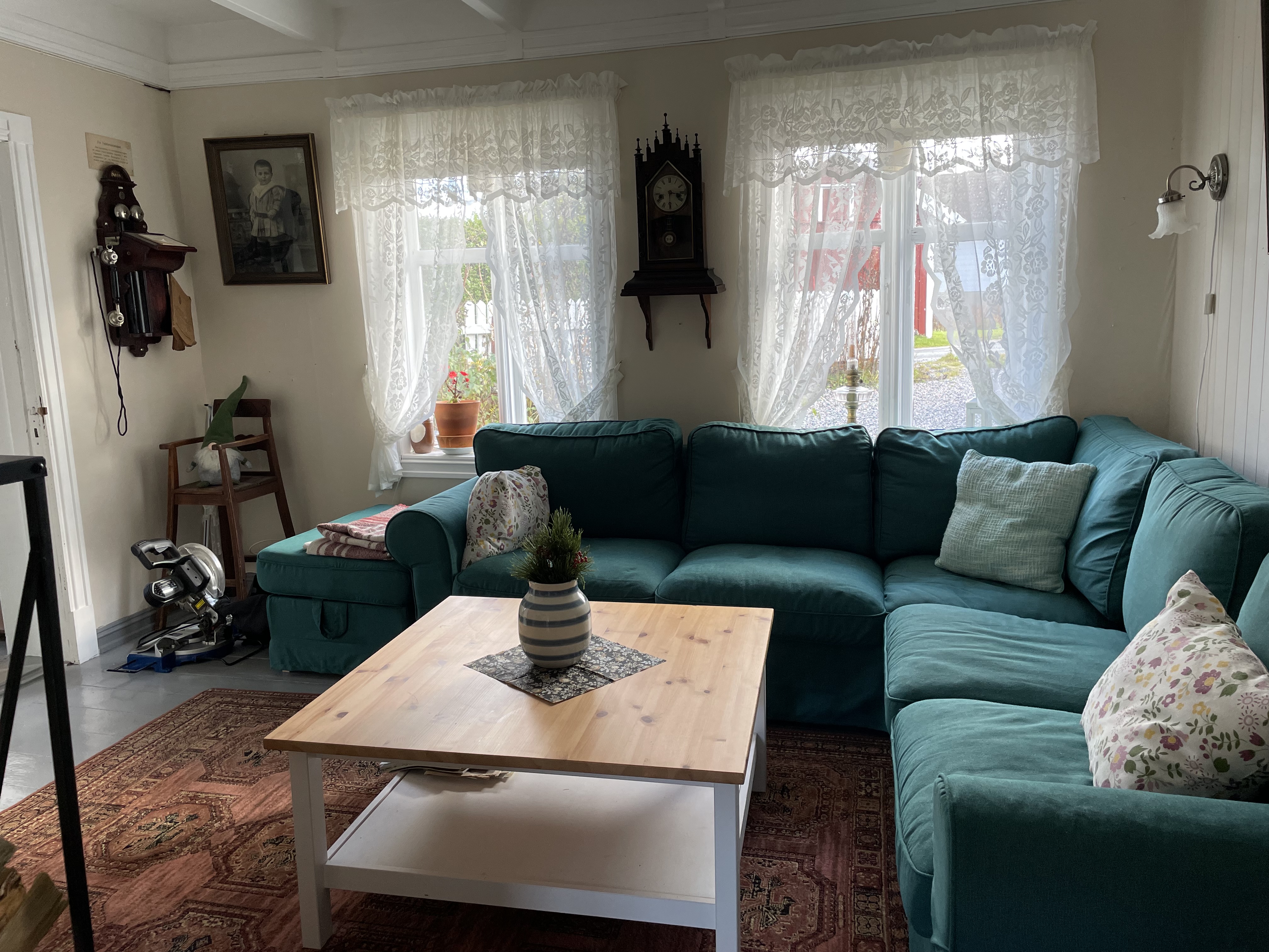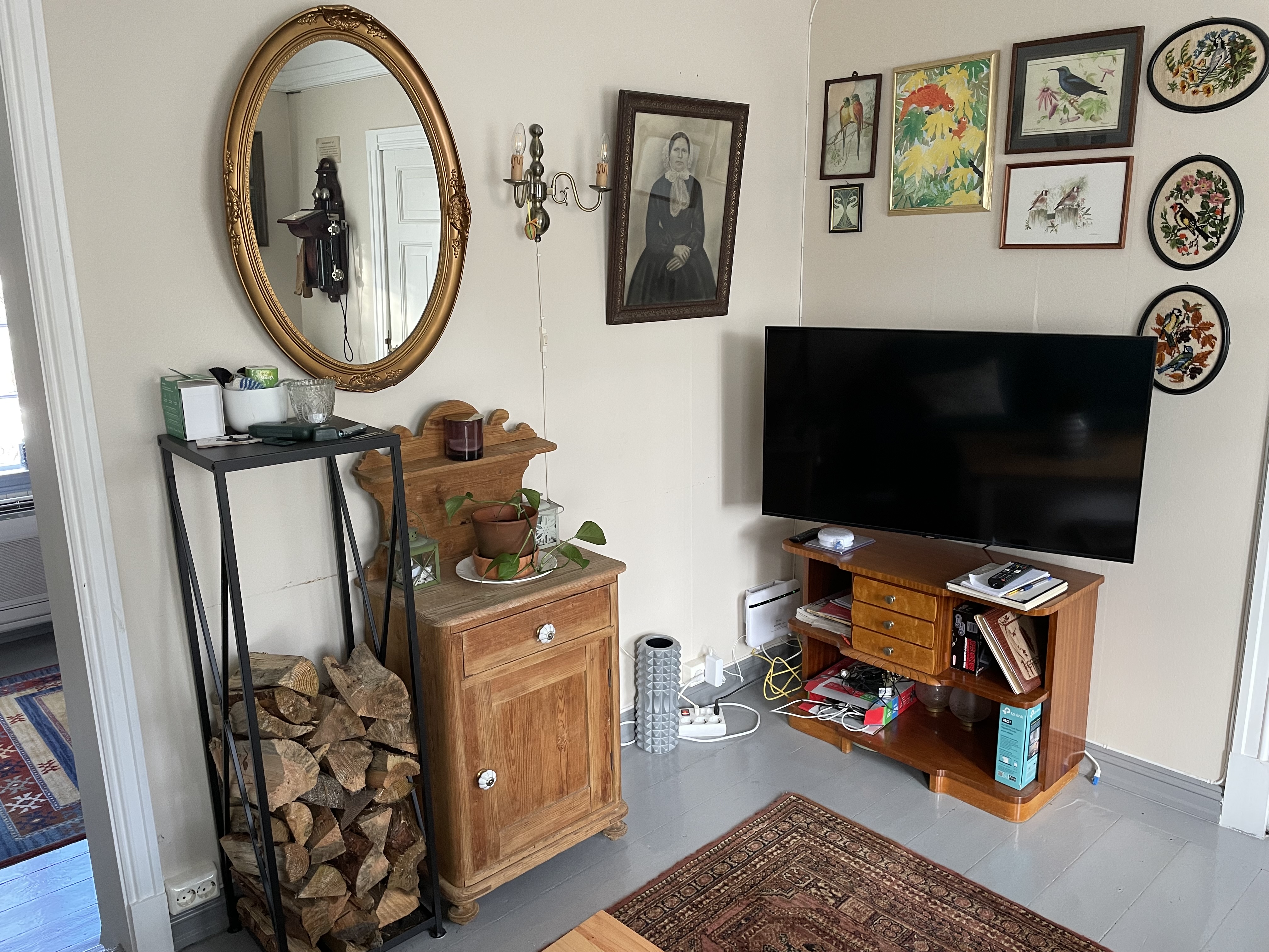 Stue med parabolanlegg, varmepumpe, el. varme, vedovn, støvsuger