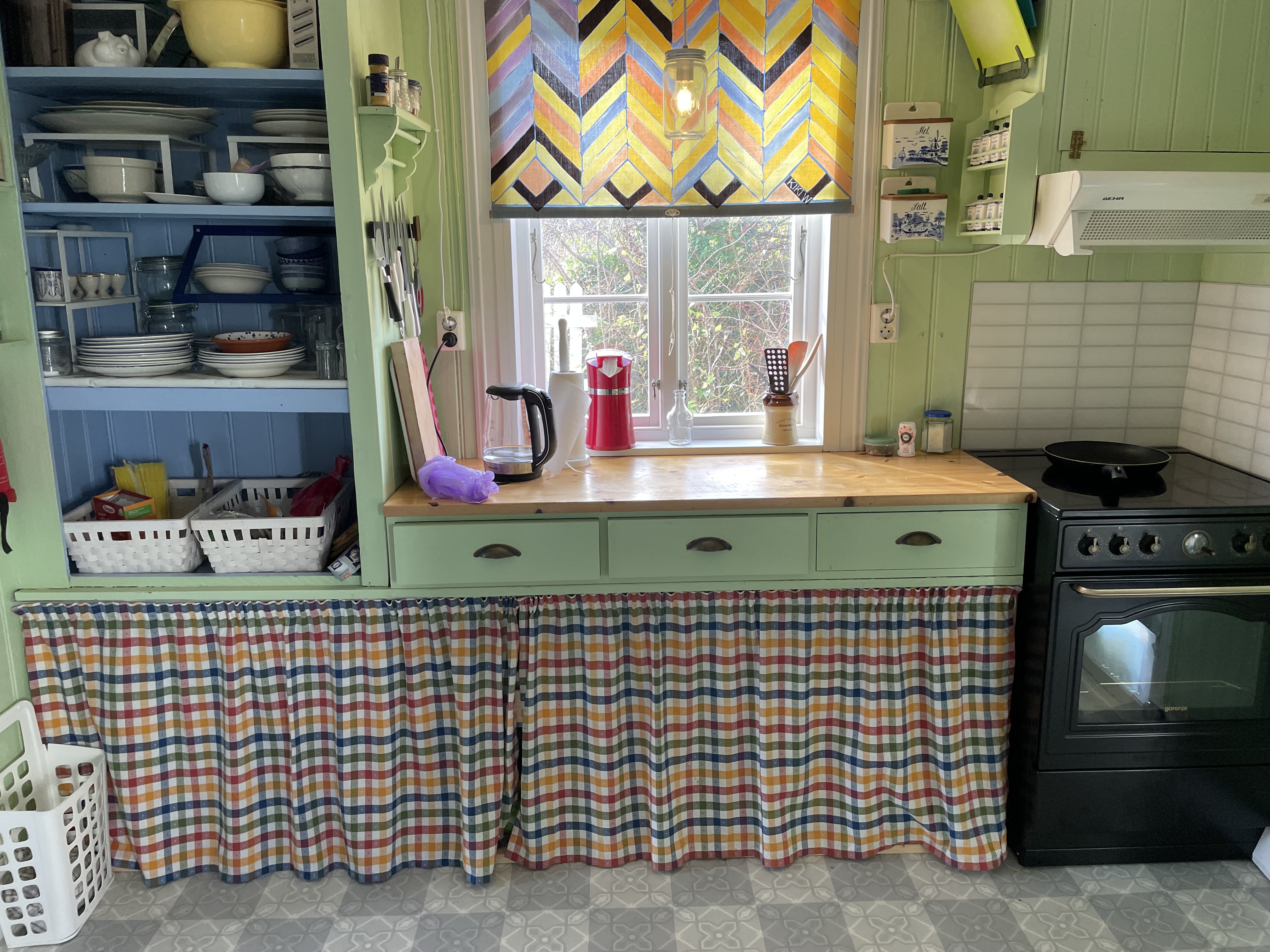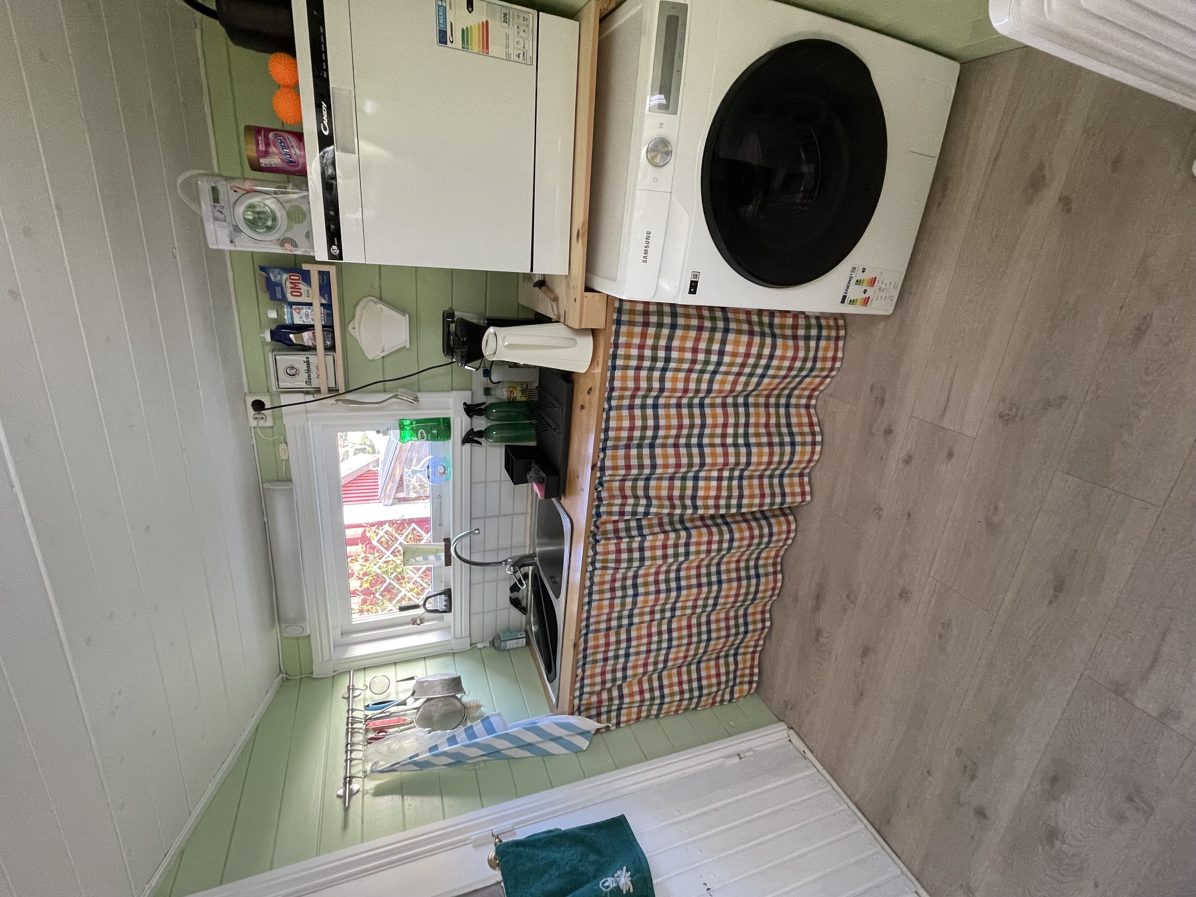 Separat kjøkken med el. komfyr, kjøleskap/ fryser, kaffetrakter, vannkoker,oppvaskmaskin og vaskemaskemaskin.