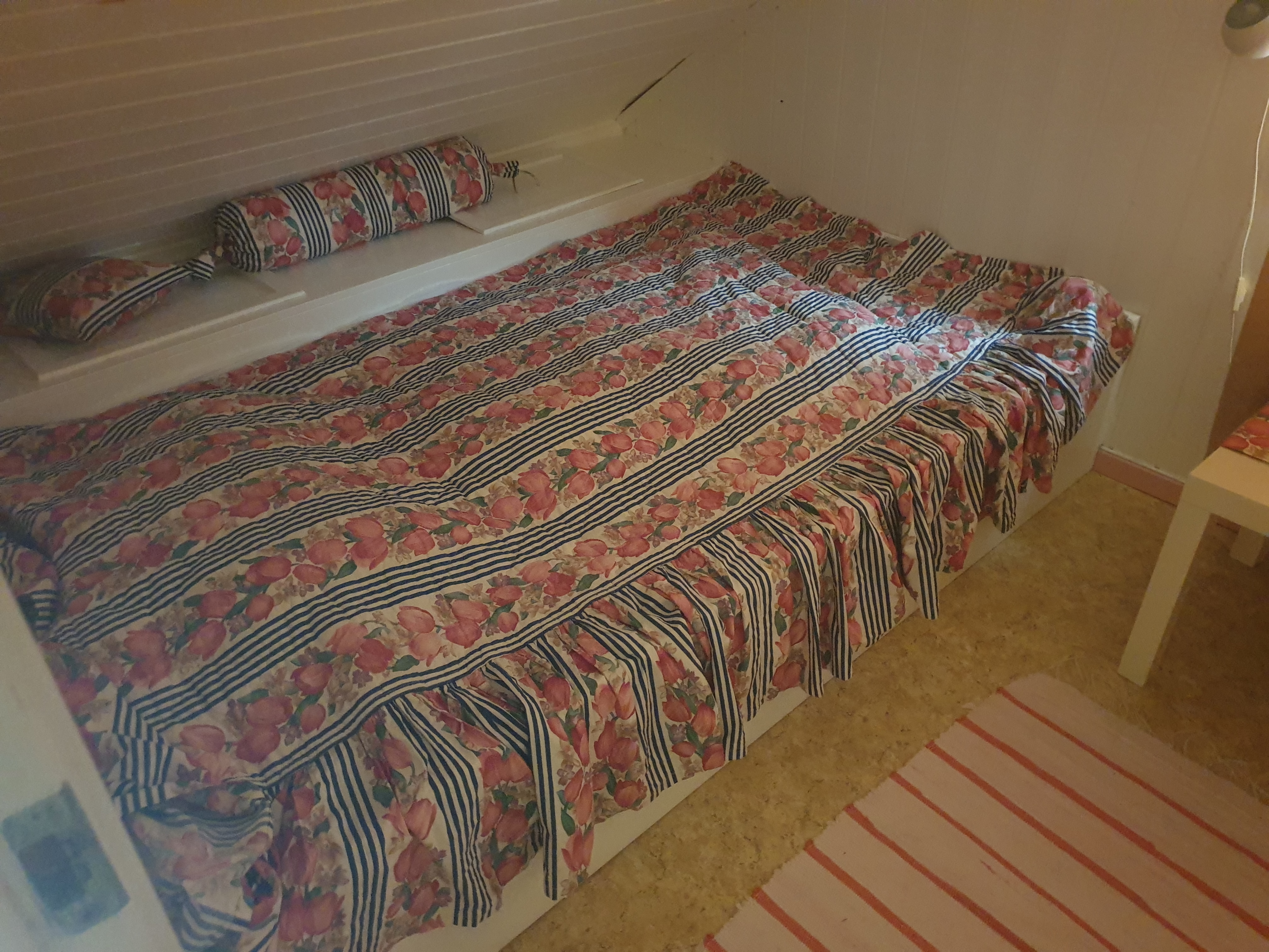 Soverom: 3 . 1 med dobbelseng, 1 med 2 : 1.20 cm senger, 1 soverom med en 1,20 cm seng. Pluss flere madrasser.