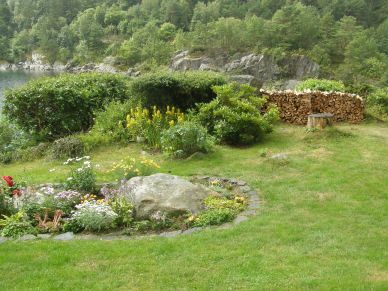 Uteområdet er på 1 mål. TOPP HYTTE, i naturskjønne omgivelser. Med en VIDUNDERLIG opparbeidet hage. Fra stua og terrassene kan man nyte en praktfull utsikt ut over havet.